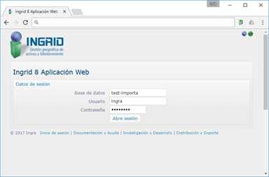 Punto de entrada a la aplicación en producción de la versión 8. En esta página de login se puede especificar cualquiera de las bases existentes (incluidas demos y tests). Además, los clientes pueden tener acceso a una página personalizada con sus logos para cada base.