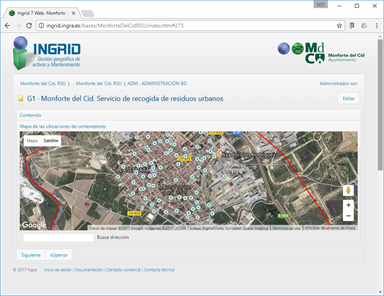 Gestión de recogida de residuos y mantenimiento de contenedores del ayuntamiento: incluye la gestión de rutas por calles, urbanizaciones, y otras zonas (rutas domiciliarias, selectivas y comerciales).