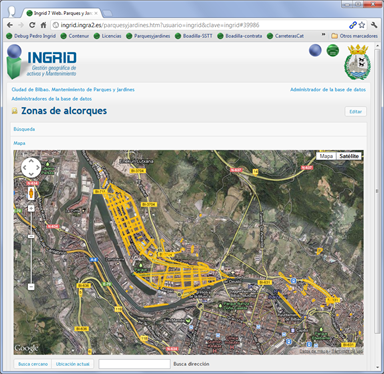 Gestión de inventario y mantenimiento preventivo y correctivo, de las zonas verdes y arbolado viario en un municipio -el ejemplo está aplicado al de Bilbao-. En una base como esta se gestionan los avisos correctivos, y la gestión de órdenes de trabajo e introducción de partes por parte de los técnicos. La programación preventiva la realiza el administrador de la base con Aplicación remota.