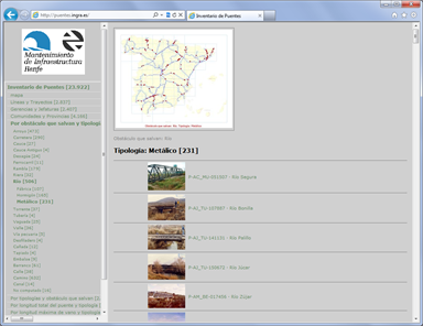 Se puede navegar geográficamente por toda la red de vías y tramos, para acceder a la ficha de estaciones y puentes. Las fichas muestran una información muy completa de componentes y datos de mantenimiento. ... |