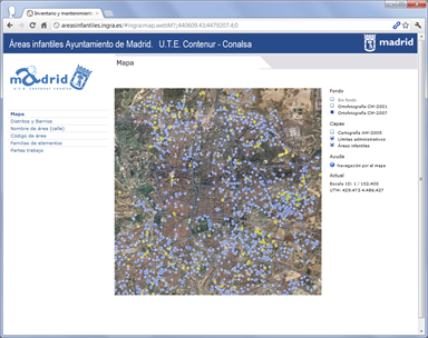 Web como publicación del inventario y gestión de mantenimiento de las áreas infantiles del ayuntamiento de Madrid, contratado a la UTE Contenur-Conalsa varias veces