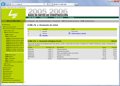 WEB Base de Datos de Construcción paramétrica 2006 (Instituto Valenciano de Edificación)