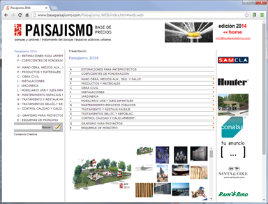 Web interactiva de la Base de jardinería y obra, con precios y partidas paramétricas