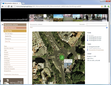 Publicación web con los 2.000 monumentos del catálogo municipal con toda su información y ubicación geográfica. Búsqueda mediante tesauro sin necesidad de servidor de aplicaciones. Actualizada en 2011 la programación y estructura del sitio web, mejorando la tecnología de mapas haciéndolos más compatibles con HTML5.