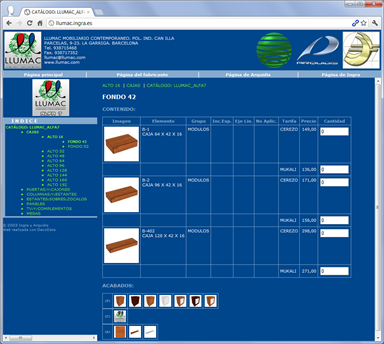Catálogo de mobiliario preparado en su versión comercial, para hacer pedidos a fábrica directamente desde la página web
