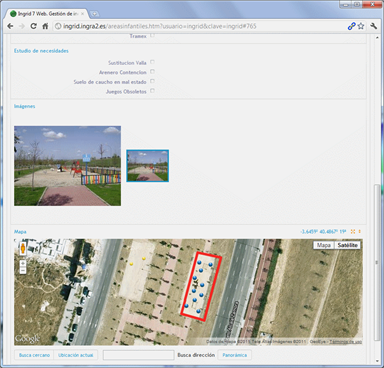 La ubicación de las actuaciones se hace geográficamente, gracias a la georreferencia de 7.000 nums. de policía y portales dentro de 1.700 tramos de calle, mostradas sobre un fondo de Google maps que permite añadir vistas StreetView. |