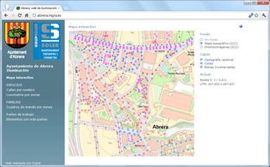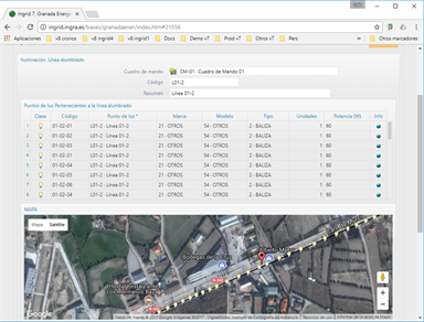 Gestión de ahorro energético en iluminación de la ciudad. Más de 6.000 puntos de luz con decenas de líneas y cuadros de mando en un inventario geográfico distribuido por alcances. Se gestionan los contratos y facturas recibidas para estudiar ahorros energéticos.
