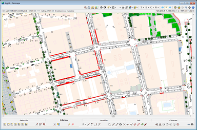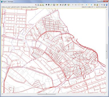 La base gestiona más de 15.000 nodos de red de una docena de clases (pozos, arquetas, rejillas, imbornales, depósitos...) y más de 20.000 líneas de red. Se han montado referencias de cartografía vectorial del año 2009 y ortofotos del 2006 con resolución de 10cm. Anteriormente ya se habían montado otros juegos de cartografía y ortofotos e incluso un recorte del MDT de la NASA. ... |