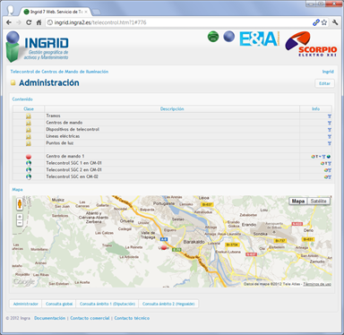 Monitorización y actuación remota sobre Centros de mando de iluminación, de la ronda Super Sur, mediante dispositivos de telecontrol. Desde cualquier navegador se puede actuar sobre los relés del dispositivo de control, monitorizar valores de los cuadros, y recibir alarmas, también mediante SMS.
