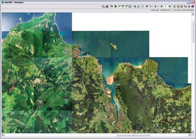 Como en el caso de Bizkaia, el escalado automático de ortofotos, permite mostrar una vista general de las ortofotos de toda la Comunidad de Navarra (unos 160x160 kms. a una escala de casi 1 pixel por metro) y movernos por toda la cartografía con esas ortofotos como fondo, cambiando con toda suavidad desde la vista general hasta la máxima resolución de la foto