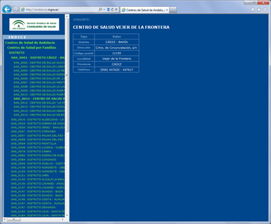 Comunidad de Andalucía. Centros de salud. Maqueta