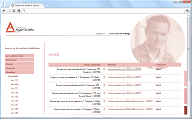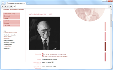 Archivo de Luis Cubillo de Arteaga publicado por la Fundación COAM en soporte CD-ROM con formato web
