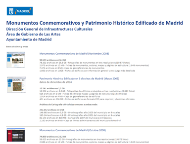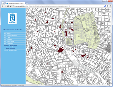 Publicación web de información de Infraestructuras culturales (museos, archivos, bibliotecas, teatros...) en cinco distritos del ayuntamiento de Madrid, con catalogación por categoría, naturaleza, mapas temáticos, fichas urbanísticas...