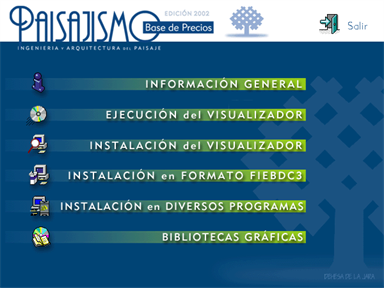 Publicación web interactiva (también en soporte CD-ROM) de la base de datos gráfica de Paisajismo, referencia estándar en jardinería, con precios y partidas paramétricas. Publicada en web por Ingra para Dehesa de la Jara