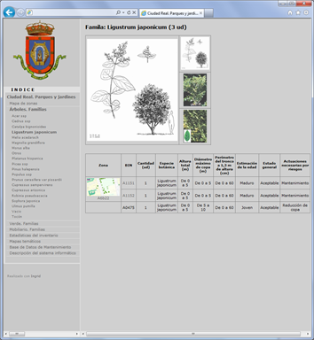 Clasifica por familias y categorías todas las Especies de arbolado, arbustos y setos, los demás elementos de jardinería, fuentes, monumentos, rotondas y áreas infantiles y ubica geográficamente todos los elementos de inventario. 12 / 2011