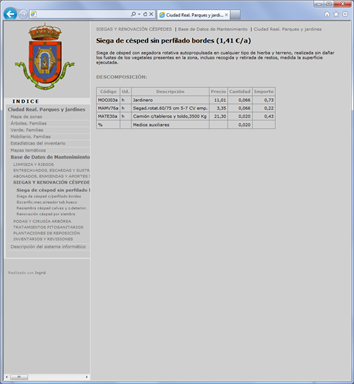 Web con la información que publica el ayuntamiento sobre zonas verdes, mobiliario, tratamientos de diversas superficies de terreno y áreas infantiles.