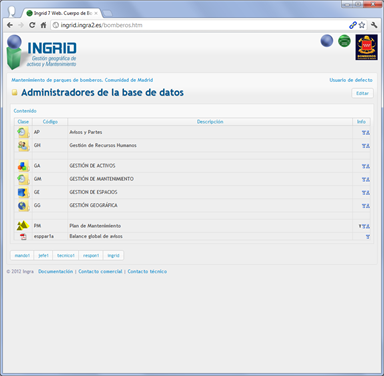La aplicación web de demostración es una maqueta de la implementación web para el proyecto que actualmente se encuentra alojado en servidores del cliente con acceso windows. Permitirá la gestión completa de mantenimiento preventivo y correctivo en varios parques de bomberos, de forma centralizada.