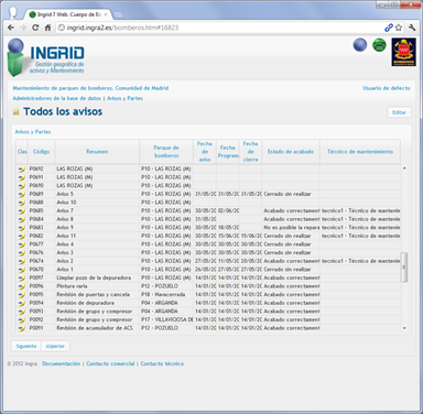 Funcionamiento del sistema de avisos para los Parques de Bomberos de la Comunidad de Madrid, mediante acceso con navegador web. Desarrollo de toda la traza de un aviso, hasta el cierre del parte y el visto bueno del jefe del parque