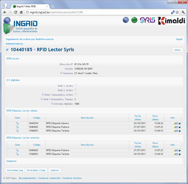 Funcionalidad para conectarse a una red de lectores RFID activos y poder controlar el movimiento y situación de activos con etiquetas, incluso remotamente, a través de cualquier navegador web. También permite interactuar con las entradas y salidas digitales de los lectores.