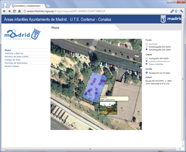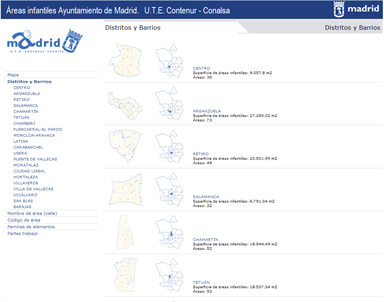 Web como publicación del inventario y gestión de mantenimiento de las áreas infantiles del ayuntamiento de Madrid, contratado a la UTE Contenur-Conalsa varias veces