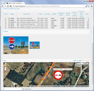 Web de producción del sistema de avisos y control de gestión de comunicaciones y vigilancia en Carreteras de Cataluña. Incluye inventario geográfico de 7.200 tramos de carretera, y más de 1.000 tramos de mantenimiento gestionados por decenas de contratas y parques dependientes de los Servicio Territoriales.