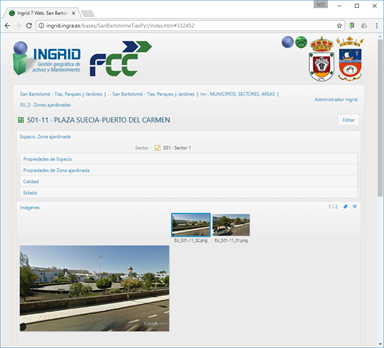 Gestión de mantenimiento de parques y jardines de ambas ciudades con gestión de inspecciones y correctivos para los avisos de incidencias. Completas fichas de zonas ajardinadas con impresión de fotos y planos de posición